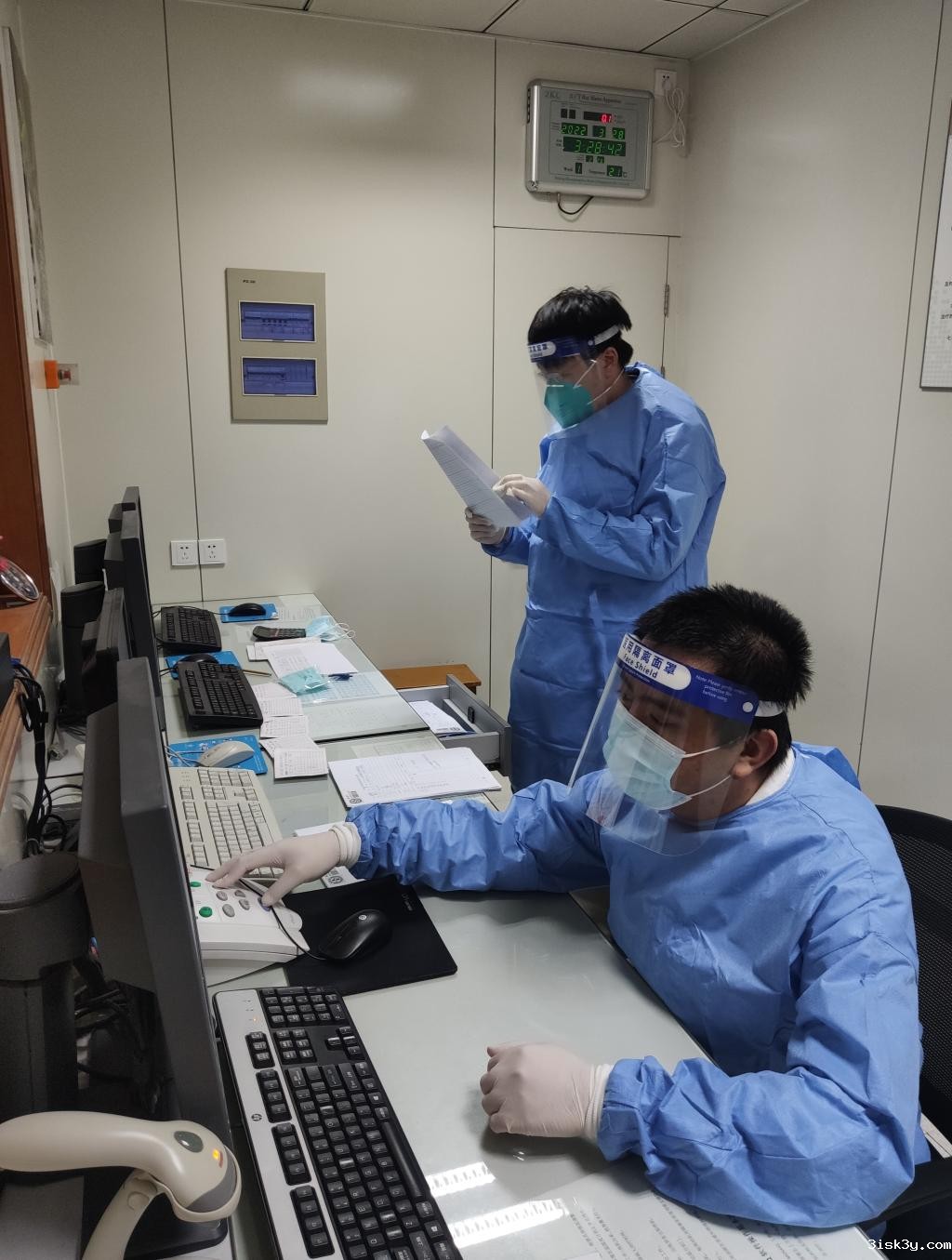 由于放疗科治疗机房只有一个,疫情期间如何保证不同风险等级的患者开展治疗是一项重大挑战。在院医务处和院感处指导下,由科主任牵头,科室核心小组商量,共同制定出三时段三等级风险消杀方案。方案把患者分为三类:低风险住院患者、低风险门诊患者以及管控区患者。每天按风险等级分时段逐次治疗,医生、技术员严格遵守疫情防控指南进行操作。每个治疗时段结束,安排专人进行患者模具、治疗床板、操作开关以及台面座椅等各项消杀。虽然工作量很大,工作时间延长很多,但为了病人的安全,科室的正常运转,放疗科的医护们不敢有丝毫疏忽,一切都在认真有序的进行中。3月以来,放疗科患者数量不减反增,达到了历史最高水平,医护人员常常需要加班加点到很晚才能及时完成各项医疗任务。