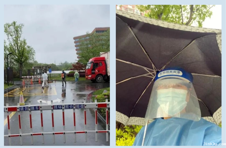 在学校实施楼宇封控管理后,驻守学院的老师组成送餐志愿服务队,无论烈日当空或是大雨倾盆都及时为学生配送一日三餐、水果、饮用水及防疫物资。