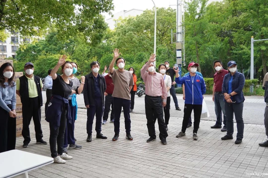 在紧邻校门口的物资配送点,校区组建的一支物资配送突击队正准备将一批防疫、生活物资装车,送往学生宿舍楼。方守恩、陈杰感谢突击队解决物资“最后一公里”。