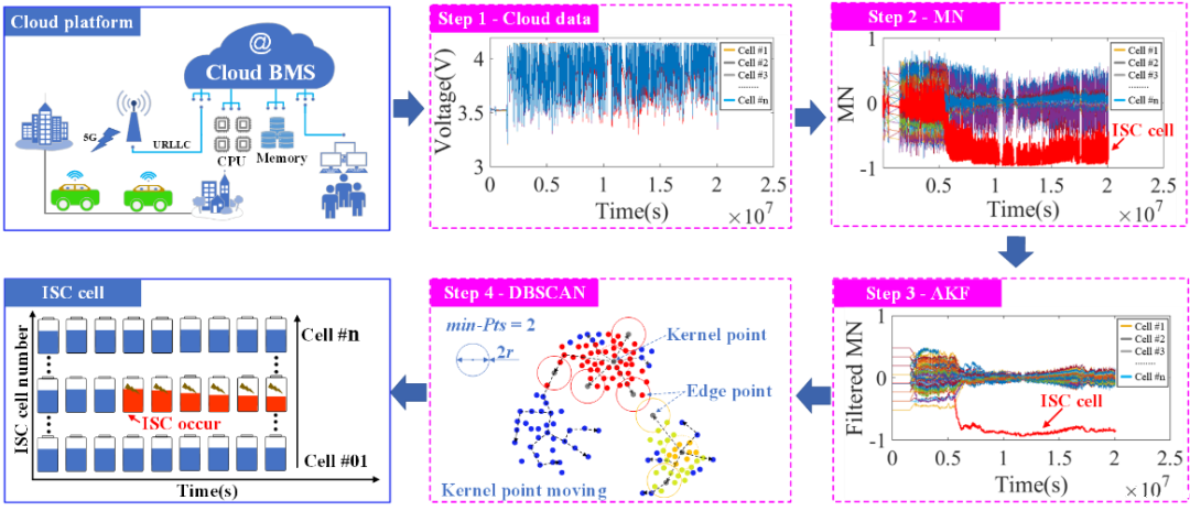 随着“5G”通信技术的日益成熟和“云计算”的兴起,借助于“云”强大计算和存储能力,及“5G”的实时传递能力,使得“云BMS”成为可能。魏学哲教授团队基于云端海量电压、电流及温度的低密度数据特征,通过数据挖掘构建基于离群系数的内短路诊断方法,最终提出“云BMS”对内短路实时诊断解决方案,该方法无论是对10s或40s的低频数据都有较好的识别效果。