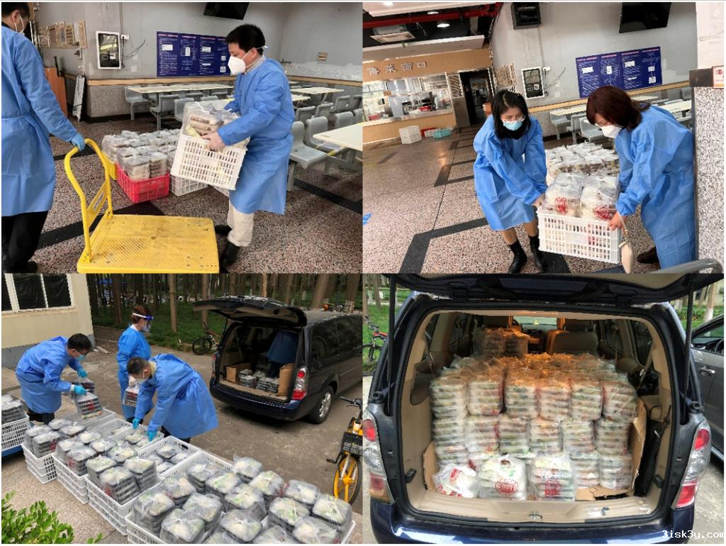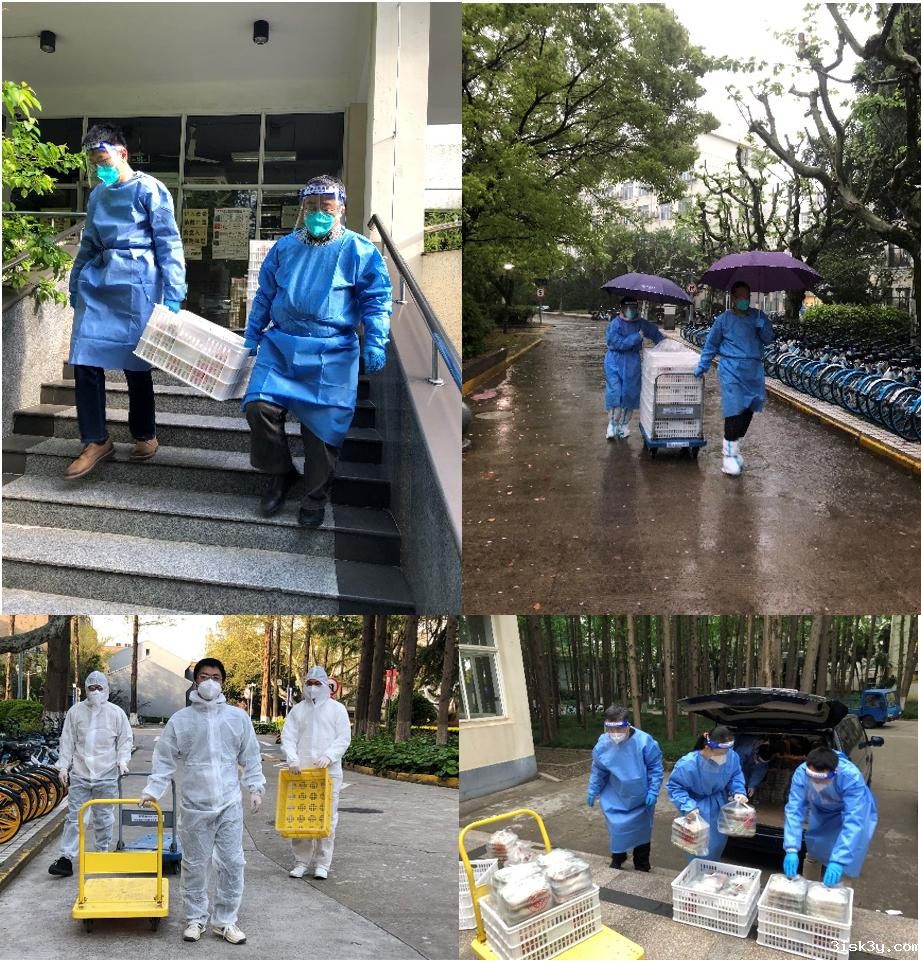 4月初,由于疫情扩散加快,学校各楼宇全部进行封闭管理,校内师生足不出户,所有物资和饮食由学校统一安排工作人员配送。海洋与地球科学学院积极响应学校号召,承担为西北一楼宿舍800多名学生配送三餐及各项必需物资的任务。尽管任务量艰巨且天气日趋炎热,学院留守师生和物业员工克服困难,穿戴好防护服和口罩,严格遵守学校防疫规定准时出发,确保学生一日三餐及时送达。工作初期,只有小推车运输,运量有限,一顿饭需要往返3至4次,好几次遇上下雨,尽管大家都被淋湿,仍按时将餐食送到学生手上。后期为了加快速度,将饭菜及时送到同学手上,学院想办法将一辆商务车改装为送餐车,大大提高了效率。送餐虽然辛苦,但每每听到同学们一声声“谢谢老师”,大家刚从二楼食堂搬运800多份盒饭的辛苦、淌下的汗水或冒雨淋湿的不适也都瞬间烟消云散。