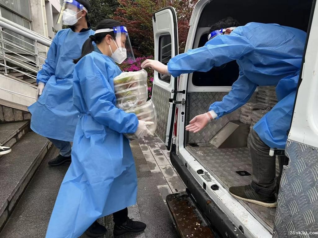 西南一宿舍门口,一位“大白”和同学亲切交流,这是学院院长李翔宁。在得知要为学生送餐的任务之后,留守校内一个半月的李翔宁也积极主动报名,化身“大白”,加入到这一支任务艰巨而光荣的队伍当中。“别的没啥,就是希望能够为我们的学生多做一点,大家一起努力,同舟共济,共克时艰”,李翔宁笑着说。
