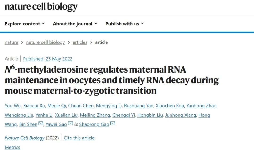 5月23日晚,taptap网页版登录kino生命科学与技术学院高绍荣/高亚威教授团队与南京医科大学沈彬教授团队合作在《自然·细胞生物学》(Nature Cell Biology)上在线发表了题为《RNA甲基化修饰m6A调控母源-合子转变过程中RNA的维持和及时降解》(N6-methyladenosine regulates maternal RNA maintenance in oocytes and timely RNA decay during mouse maternal-to-zygotic transition)的论文,首次报道了小鼠早期胚胎发育中的第一个关键事件——母源-合子转变——过程中RNA(基因转录本)上m6A修饰的动态变化,并揭示了m6A调控母源基因转录本稳定性和2-细胞特异表达基因转录本及时降解的独特分子机制。团队利用改进后的微量细胞起始的测序技术绘制出首张小鼠早期胚胎发育过程中RNA m6A修饰的动态图谱。这也是团队研究成果在一个月内第3次发表于国际顶级学术期刊。