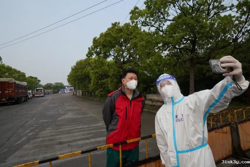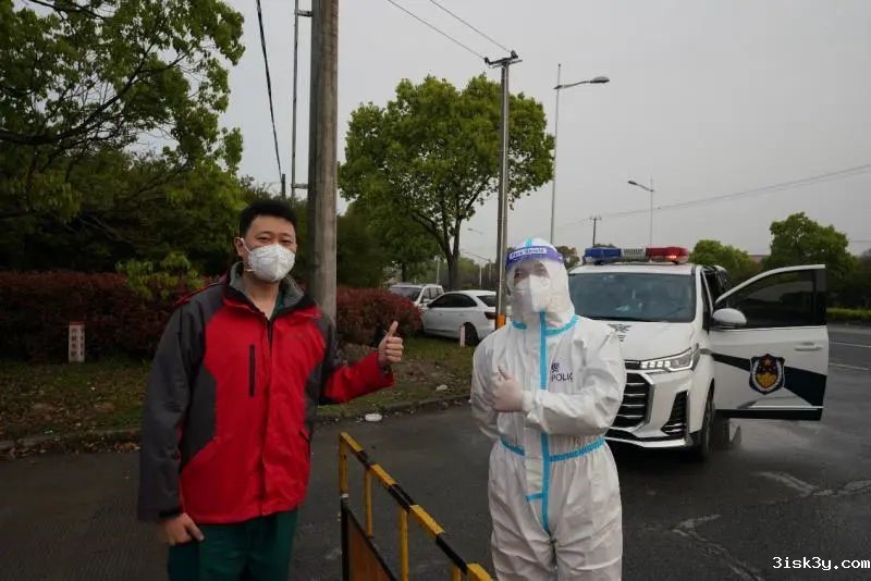 4月21日6时50分,金山天华路方舱医院门口,刚刚走下班车准备进舱上班的附属同济医院医疗队队员、急诊抢救室护士长刘建,疾步走向一位站在执勤警车前、胸前贴着警察标识的“大白”,一见面他们互相唏嘘:“你一点没变化嘛!这么多年一直在锻炼、身材保持的不错嘛,退伍不褪色!” “很想拥抱一下!可惜现在还不是时候……”“大白”是刘建十年前一起退伍的战友加好友、金山区公安局民警汤佳斌,而这次重聚距离上次相逢整整间隔了十年。