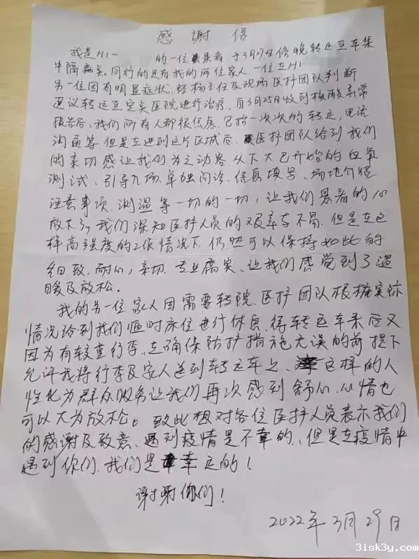 3月29日,taptap网页版登录kino附属同济医院医疗队负责的世博展览中心方舱医院刚刚收治病人的第二天,一位患者就为医疗队送来了感谢信,表扬医生组组长、呼吸与危重症医学科主任医师杨忠民的专业、耐心、细致和亲切,让病人很快走出紧张焦虑、很快适应隔离生活。