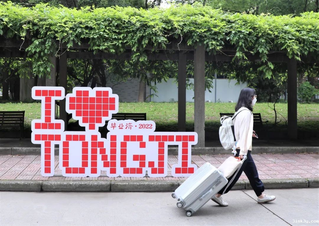 “I❤TONGJI”“2022我们毕业了”“我们来自五湖四海,即将奔赴天南地北”“让青春之花在不懈奋斗中绚丽绽放”……学校还在各校区布置了毕业拍照打卡点装置,供毕业生与学校、老师、同学等最后留个影,好好道个别。