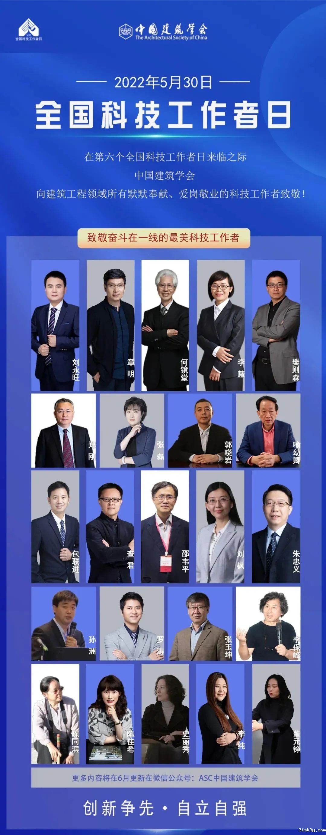 5月30日,在第六个全国科技工作者日来临之际,中国建筑学会向建筑工程领域所有默默奉献、爱岗敬业的科技工作者致敬。我校建筑与城市规划学院章明教授和邵韦平校友获评“中国建筑学会最美科技工作者”。