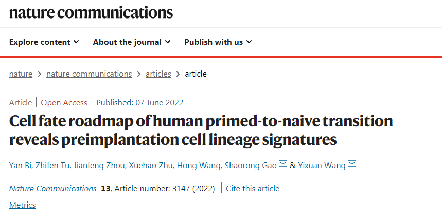 高绍荣/王译萱团队揭示人多能干细胞命运转变中的谱系特征,研究成果发表于《自然·通讯》