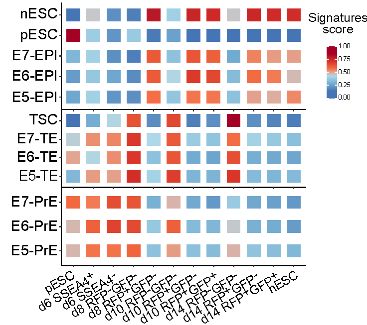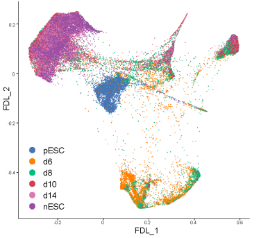 高绍荣教授介绍,此项工作首次揭示了人细胞在primed-to-naïve诱导过程中的命运转变图谱,为naïve态多能性以及早期胚胎发育的研究提供了重要基础。同时,本研究发现primed-to-naïve 转变过程中特定时间点同时出现滋养外胚层样和原始内胚层样的异质性细胞群体,为人类胚胎体外构建提供重要的研究模型。