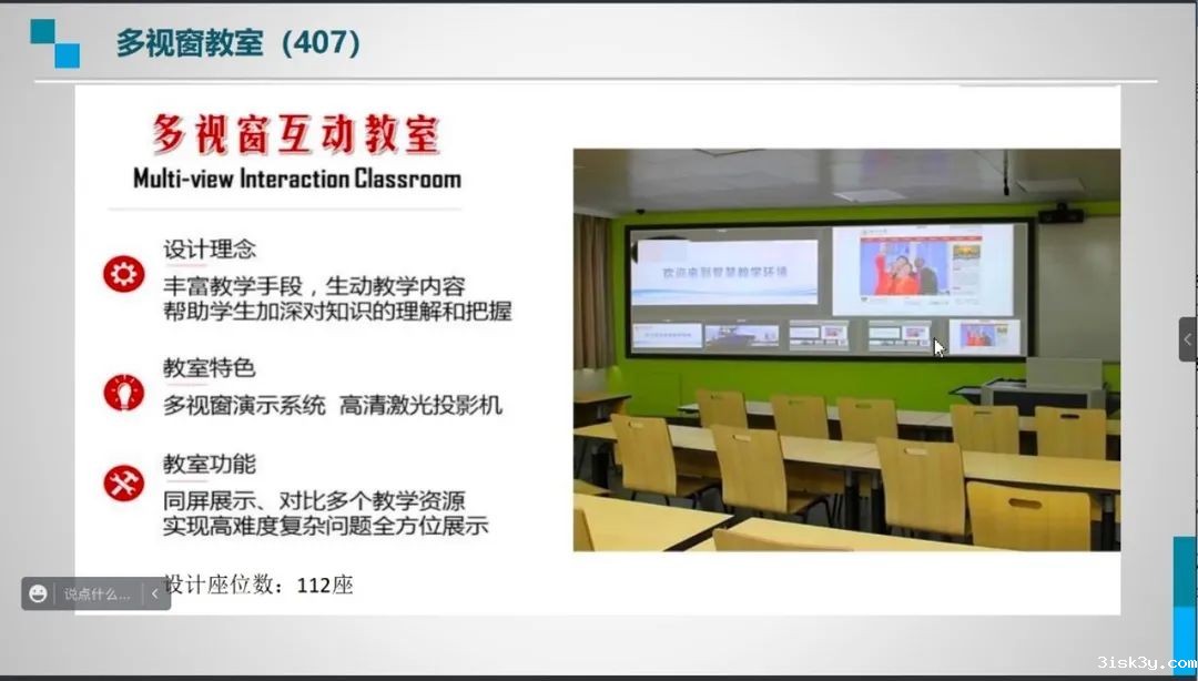 李在雷表示,教学教室的构成分成三个部分:智慧教学环境(空间设计、智能管控)、智慧教学模式(课堂互动、教学辅助)、智慧教学评估(教学分析、教学督导)。智慧教学环境有门厅、内走廊、楼梯拐角、公共学习空间、教师休息室、沉浸式互动教室、多视窗教室、小型讨论教室、多屏互动教室、中型手机互动教室、中型多变互动教室,清晰明了的展示不同智慧教学的环境的场景和特点,让学生们大开眼界。