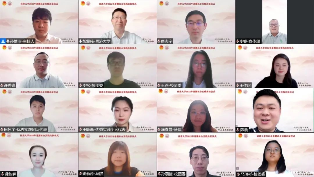 彭震伟殷切寄语参与暑期社会实践的同学们,希望大家坚定理想信念、厚植家国情怀、抓牢学思践悟,发挥所长、躬身力行,践行新时代同济文化,努力成为“知识、能力、人格”全面发展的优秀人才,在知行合一中践行“请党放心,强国有我”的青春誓言。随后,他与老师们一起为实践团队点赞并进行线上授旗。