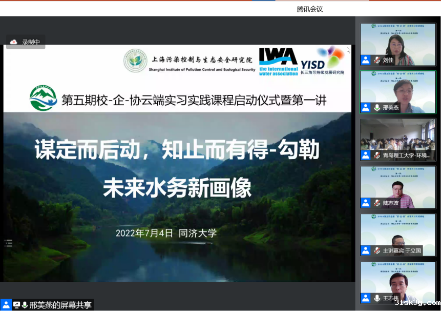 7月4日上午,第五期全国“校-企-协云端实习”暑期课程在云端拉开帷幕。第一讲特邀北控水务集团有限公司高级副总裁于立国,为全国环境学子们带来题为《谋定而后动,知止而有得——勾勒未来水务新画像》的讲座。来自全国20个省市自治区、40多所高校、9家企事业单位1200余名环境学子,通过腾讯会议在线参与了课程第一讲的学习。青岛理工大学的师生代表们同步通过智慧教室实现了跨时空共享共学。此外,课程教学团队还在超星学习通平台上,为参与高校学生建立了67个班级,为同学们提供预习、提问、考查、回看等全链条学习资源。