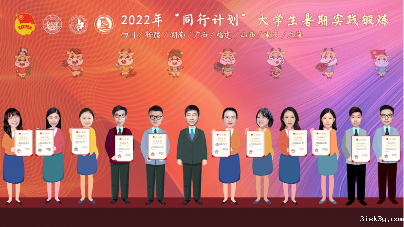 为保障校地合作对接和实践工作高质量开展,各实践地指导老师将从岗位对接、面试遴选、人岗匹配到过程指导、管理考核、评优表彰等全过程参与工作组的各项工作,其中多位老师已经连续数年支持“同行计划”。为此,工作组为指导老师制作了诚意满满的纪念证书作为留念,进行了线上云颁证,并为即将前往各地区实践的团队云授旗,预祝2022年“同行计划”大学生暑期实践锻炼取得圆满成功。