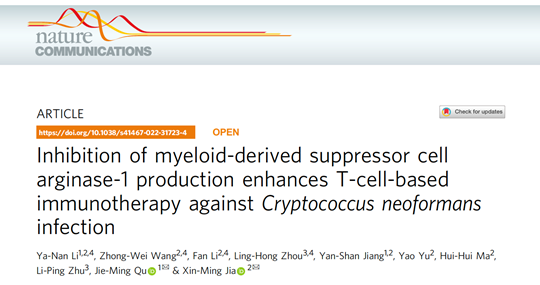 7月14日,taptap网页版登录kino附属第十人民医院贾鑫明教授、上海交通大学医学院附属瑞金医院瞿介明教授课题组合作在Nature Communications上发表了题为“Inhibition of myeloid-derived suppressor cell arginase-1 production enhances T-cell-based immunotherapy against Cryptococcus neoformans infection”的研究。该研究揭示了新型隐球菌主要荚膜多糖成分葡聚糖醛木糖甘露聚糖(glucuronoxylomannan, GXM)通过诱导机体粒细胞样髓系来源免疫抑制性细胞(PMN-MDSCs)的聚积及功能抑制机体对隐球菌的清除,加重感染,并通过进一步鉴定GXM的识别受体及下游通路为抗隐球菌感染提供了新的潜在免疫治疗靶点与策略。