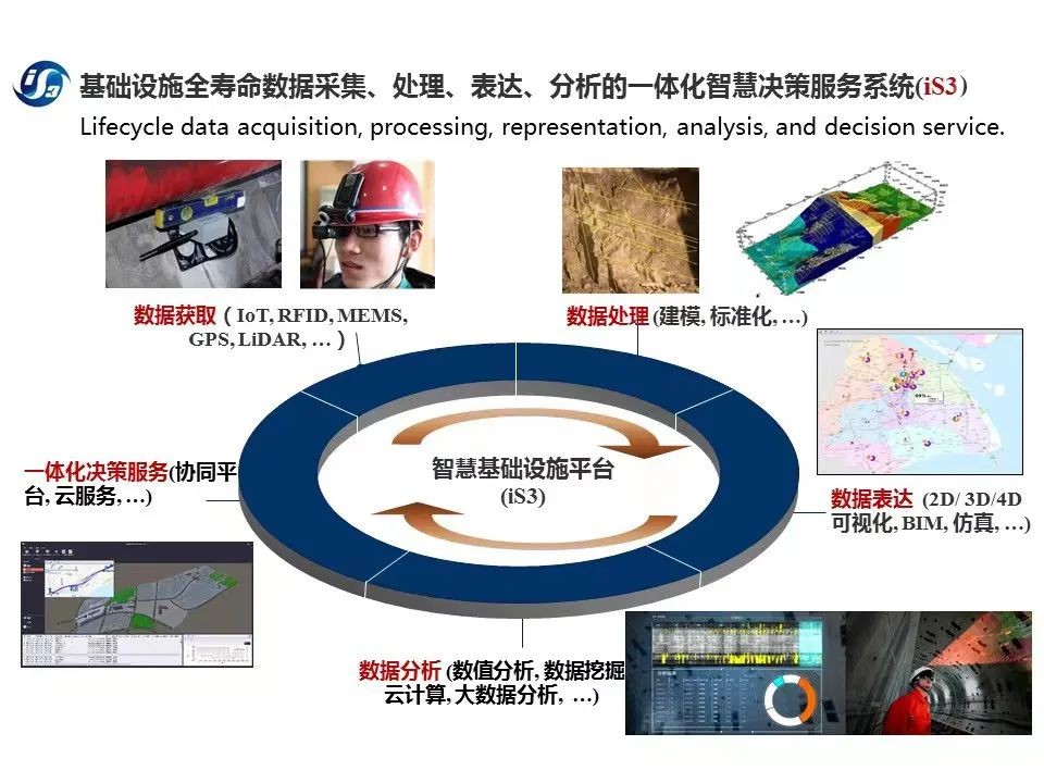 土木工程学院自主研发了国际上第一个开源的基础设施智慧服务系统iS3 (infrastructure Smart Service System),实现了基础设施全寿命周期数据的采集、处理、表达、分析和服务一体化集成管理。成果已应用于多项重大工程中。