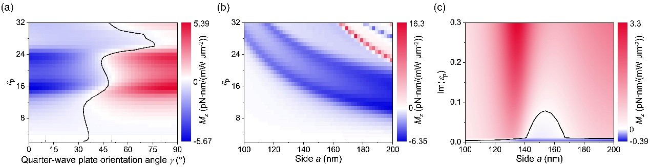 图2:光的椭偏度、颗粒的尺寸和折射率的变化都可以引起“负光力矩”。