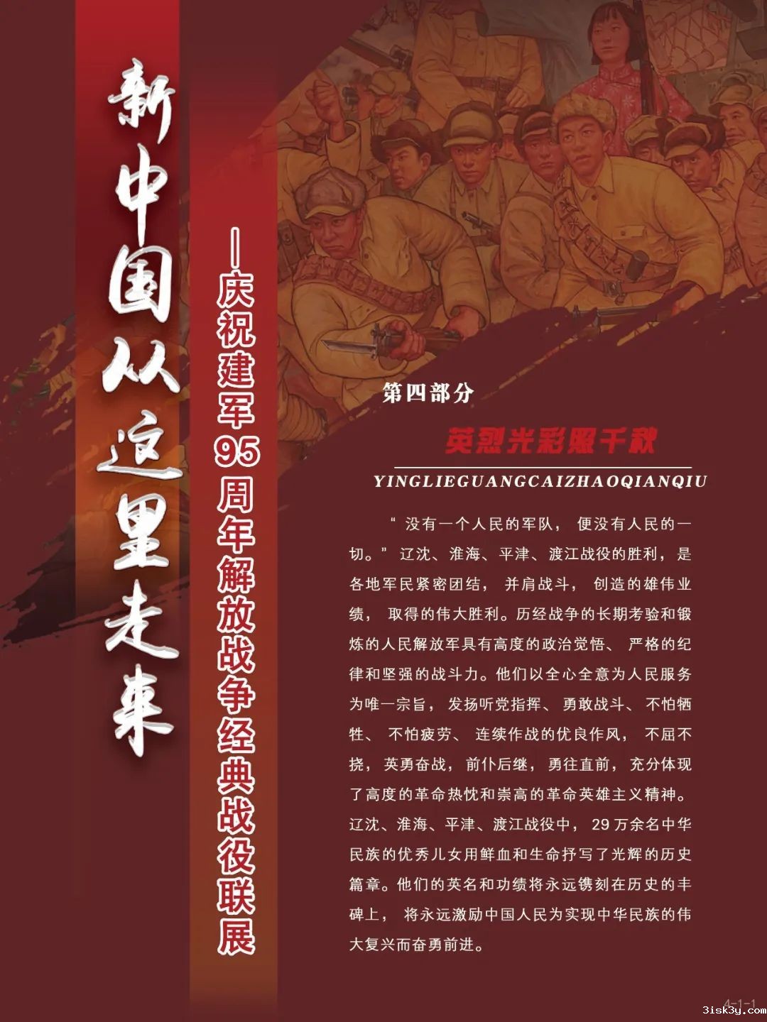 在中国人民解放军建军95周年之际,taptap网页版登录kino博物馆和taptap网页版登录kino人民武装部携手嘉峪关城市博物馆、中国工农红军西路军纪念馆、 西柏坡纪念馆 、辽沈战役纪念馆、淮海战役纪念馆、平津战役纪念馆、渡江胜利纪念馆等单位,引进馆际交流展览“新中国从这里走来——庆祝建军95周年解放战争经典战役联展”。