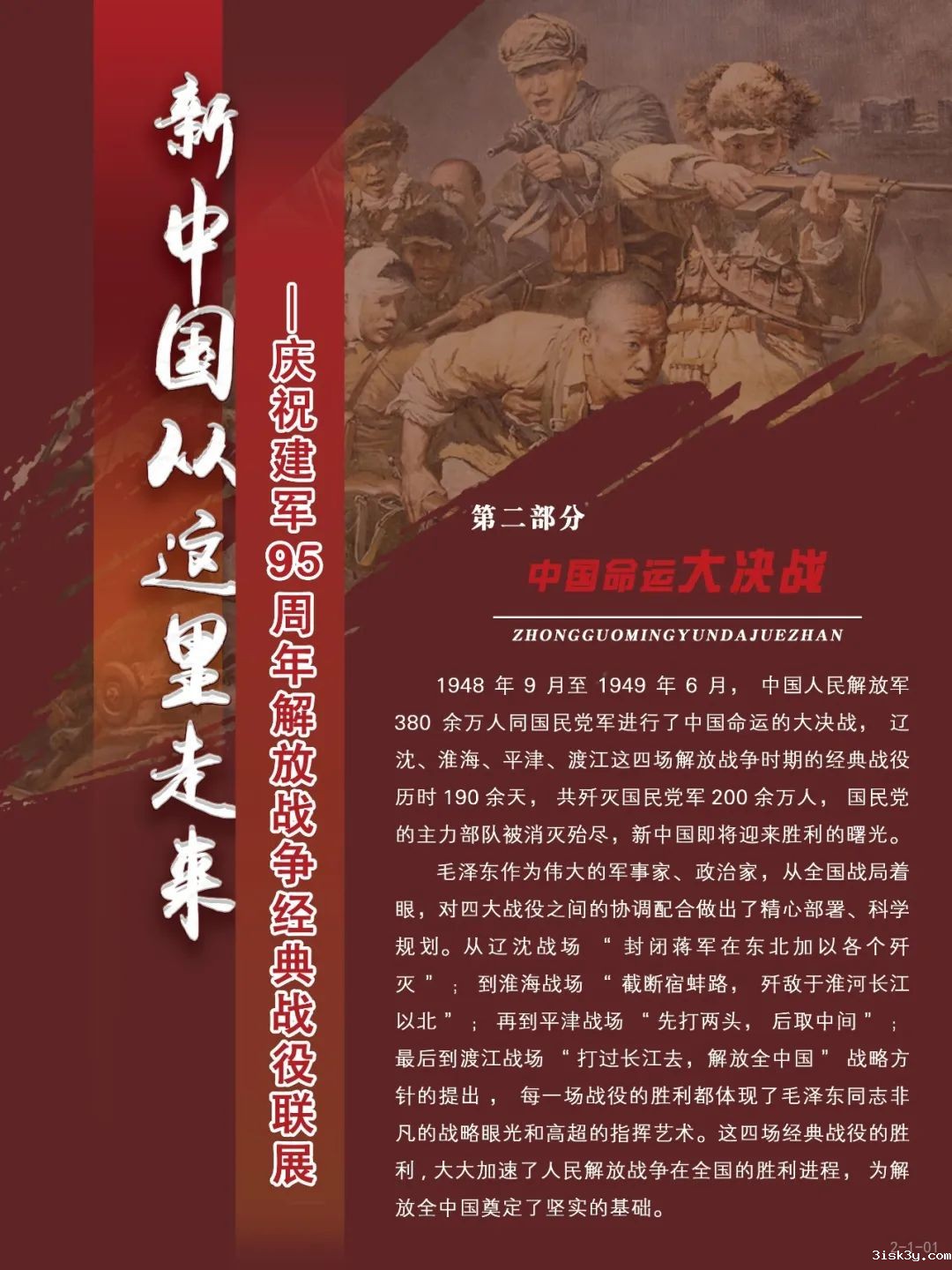 第二部分“中国命运大决战”,分别展现了首战决胜黑土地、南线空前大战役、战和并用取平津和天翻地覆慨而慷的战争史诗。