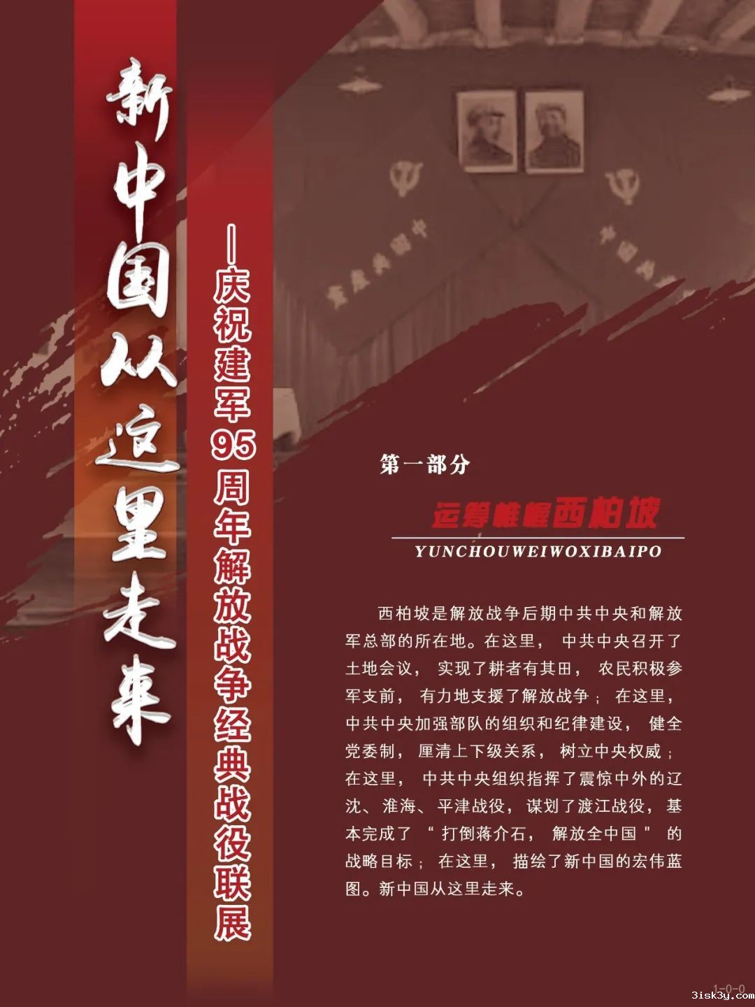第一部分“运筹帷幄西柏坡”,介绍了西柏坡作为战略决战指挥部,党中央以非凡的战略眼光,高超的指挥艺术,打造出一支听党指挥、能打胜仗的人民军队。