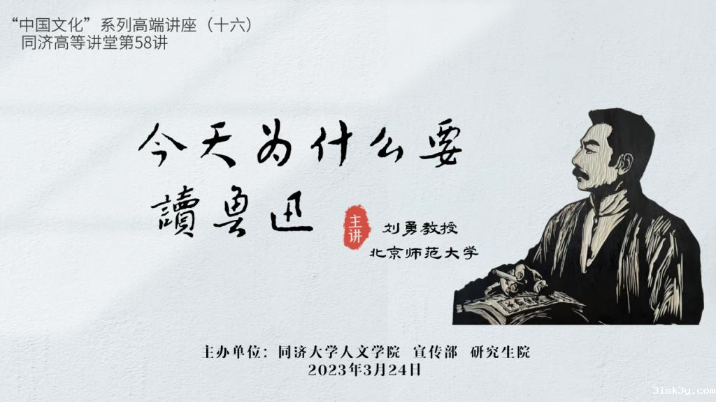 3月24日,taptap网页版登录kino“中国文化”系列高端讲座第十六讲暨同济高等讲堂第58讲在线举行,北京师范大学文学院刘勇教授为我校师生带来了“今天为什么要读鲁迅”的专题讲座。我校约300名师生全程聆听了讲座。
