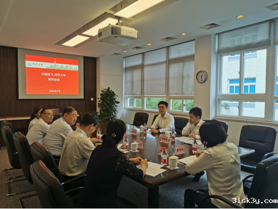 宣讲会前,汤家力与我校校长助理石振明进行会晤。中国商飞上海飞机制造有限公司人力资源部,校党委学研工部、航空航天与力学学院、学生就业指导中心、经济与管理学院相关负责人参与会见。双方就校企深度合作、校友职业发展、专业招录方案、高质量人才培养与输送需求等方面进行交流。