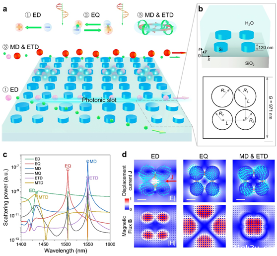 图1. 介电质超表面中多极子模式用于颗粒操控示意图