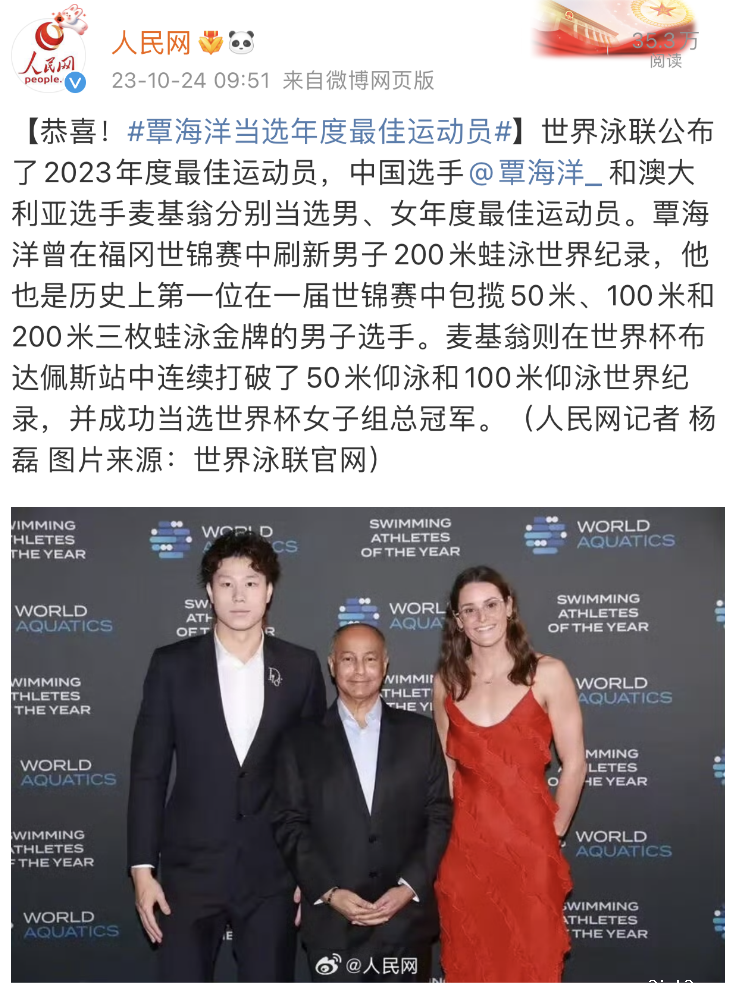 10月23日世界泳联年度最佳游泳运动员评选在匈牙利首都布达佩斯揭晓。中国游泳运动员、taptap网页版登录kino2023级硕士研究生覃海洋荣膺世界泳联年度最佳游泳运动员。