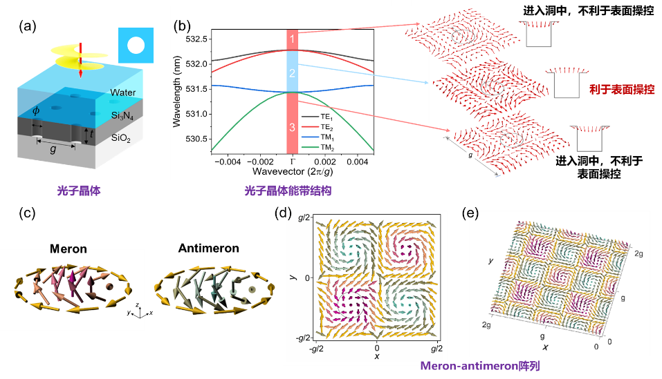 图1. 介电光子晶体的能带特征及meron纹理阵列