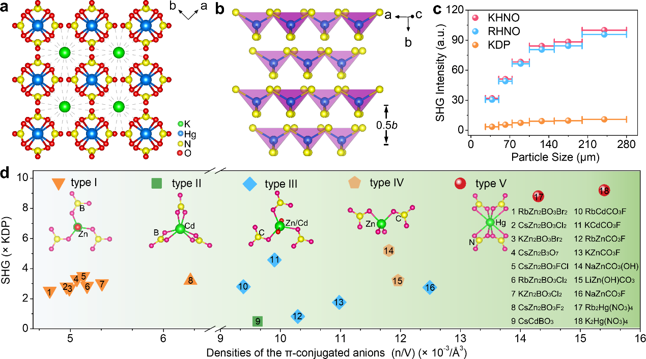非线性光学晶体因其独特的频率转换功能,是实现难以获得(深)紫外激光输出的关键材料,在高分辨率显微镜成像、精密机械制造、光刻技术和光通信等光学和光电领域具有重大的实际应用需求。目前商业化的非线性光学晶体包括β-BaB2O4 (BBO),KH2PO4 (KDP),KTiOPO4 (KTP)等。应用新颖光学活性基元是研创紫外非线性光学晶体材料的传统方法之一。然而,光学活性基元间的复杂键合作用使得构成材料的一种或多种光学活性基元难以实现最佳有序组装集合,从而导致研制的材料难以达成倍频效应、光学透过窗口、光学带隙、双折射率等光学性能同步优化增益。因此,探索设计合成紫外非线性光学晶体是当前高性能光学材料、现代光通讯等领域的一个极富挑战的科学与技术难题。