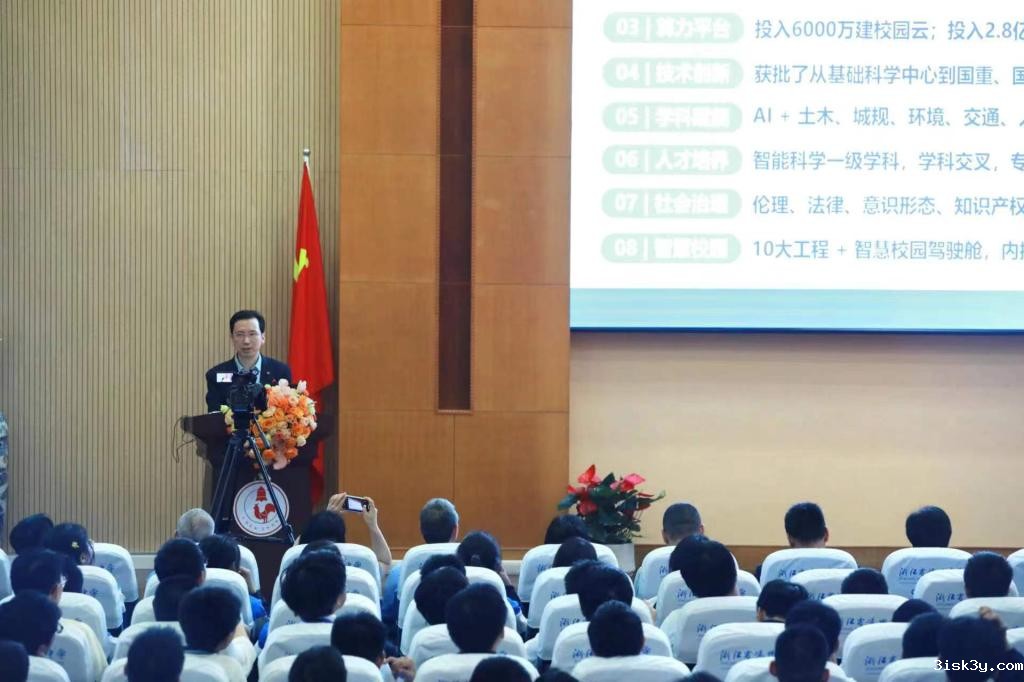 郑庆华为学生作了题为《人工智能何以改变世界》的科普讲座,介绍了人工智能的历史背景及意义、发展前景。他表示,人工智能作为一种新质生产力,正在创造人类文明的第四个里程碑,并赋能教育的方方面面。围绕“打造平台、赋能学科、培养人才、产教融合”等关键点,郑庆华通过生动的案例和前沿的科技成果,展示了推进人工智能+的同济方案。他鼓励学子珍惜高中学习时光,掌握好基础知识,积极拓宽科学视野,勇攀科学高峰,期望更多母校的优秀学子融入国家人工智能发展事业,为推动人工智能赋能新质生产力作出贡献。精彩的讲座赢得现场阵阵掌声。