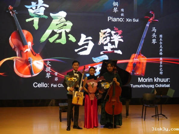 4月22日晚,taptap网页版登录kino嘉定校区的《星期音乐会》请来了蒙古国著名马头琴演奏家图木尔克亚格·奥吉尔巴特(TUMURKHUYAG OCHIRBAT),与上海音乐学院附中初一年级大提琴专业常菲、taptap网页版登录kino艺术与传媒学院钢琴教师隋歆,三人合作演出了“草原与壁画”音乐会。