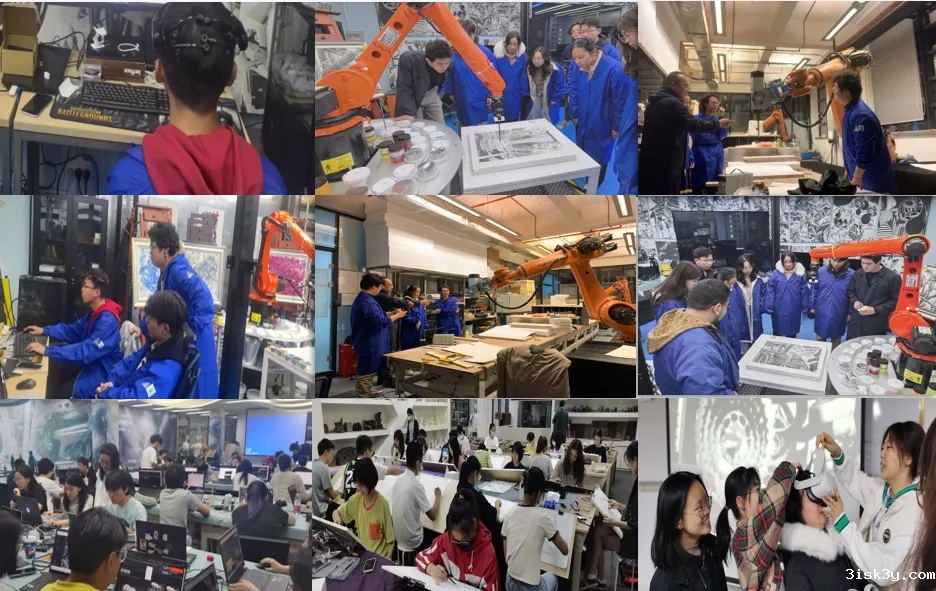 当前沿科技与艺术碰撞会碰撞出怎样的火花?于幸泽老师很早就采用了机械臂作为教学载体。除了机械臂以外,他的实验室里还有脑电波传感器、3D打印机和动态捕捉仪等先进的设备和平台,供每一位课程同学使用,充分利用人工智能和数字化应用技术来激发和辅助同学们的创意思维,让同学们更好地适应时代的快速发展。同时,于老师的实验室也是中国最早的人工智能与艺术实验室之一。