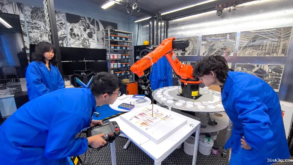 走进实验室,一个正在上下翻飞的“大玩具”机械臂映入眼帘,正在同学们的“指令”下泼墨挥毫、妙笔生画。