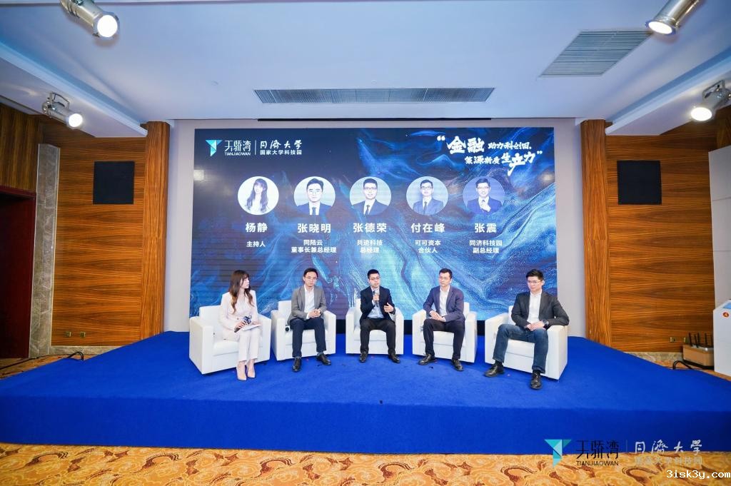 在圆桌论坛上,同济科技园副总经理张震、可可资本合伙人付在峰、上海同陆云交通科技有限公司董事长张晓明、上海共迹科技有限公司总经理张德荣围绕“金融助力科创园,策源新质生产力”的主题展开话题探讨,与会嘉宾共同解码了金融与科技创新之间的紧密联系,以及国家大学科技园在促进这一过程中所扮演的关键角色。