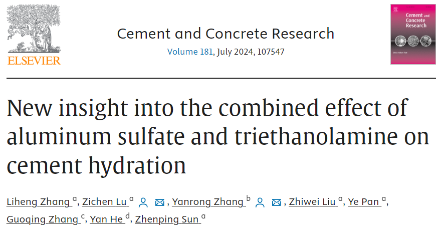 材料科学与工程学院卢子臣团队关于硫酸铝与三乙醇胺共同作用对水泥水化过程影响的最新研究成果发表于《水泥混凝土研究》