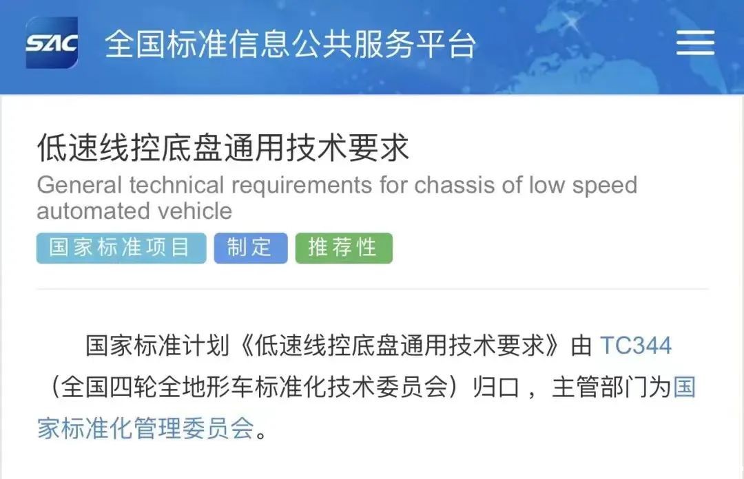 参与制定国内首个线控底盘国家标准