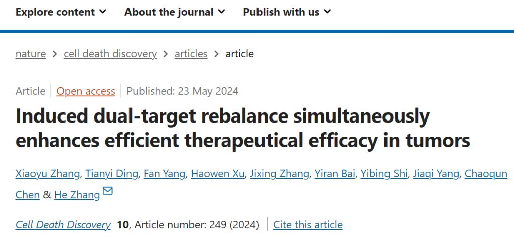 生命科学与技术学院张赫团队建立诱导双靶点再平衡新方法显著提高肿瘤靶向治疗效果,研究成果发表于《细胞死亡与发现》