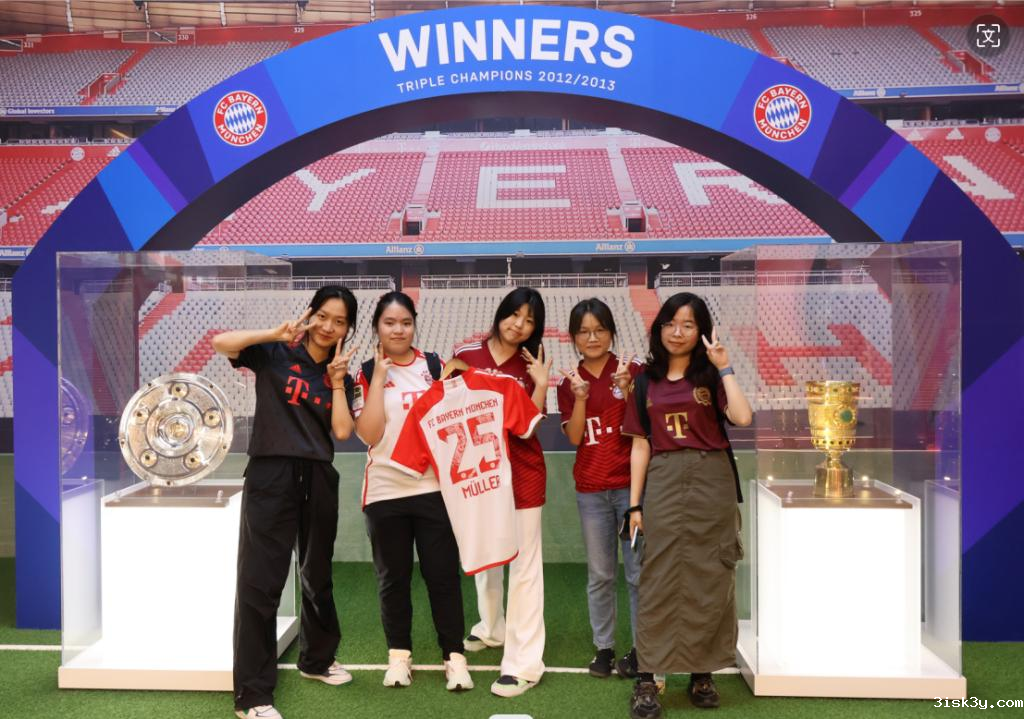 拜仁慕尼黑太仓展示中心是一个集历史展览、互动体验于一体的现代化展示空间。在这里,球队的球衣、球鞋和3座冠军奖杯等陈列其中,同比例复刻了“拜仁慕尼黑足球主场球员更衣室”,生动呈现了拜仁球队的辉煌历史和球队荣誉等内容。师生们还观看了拜仁慕尼黑2013年夺冠十周年纪录片《温布利一代》。