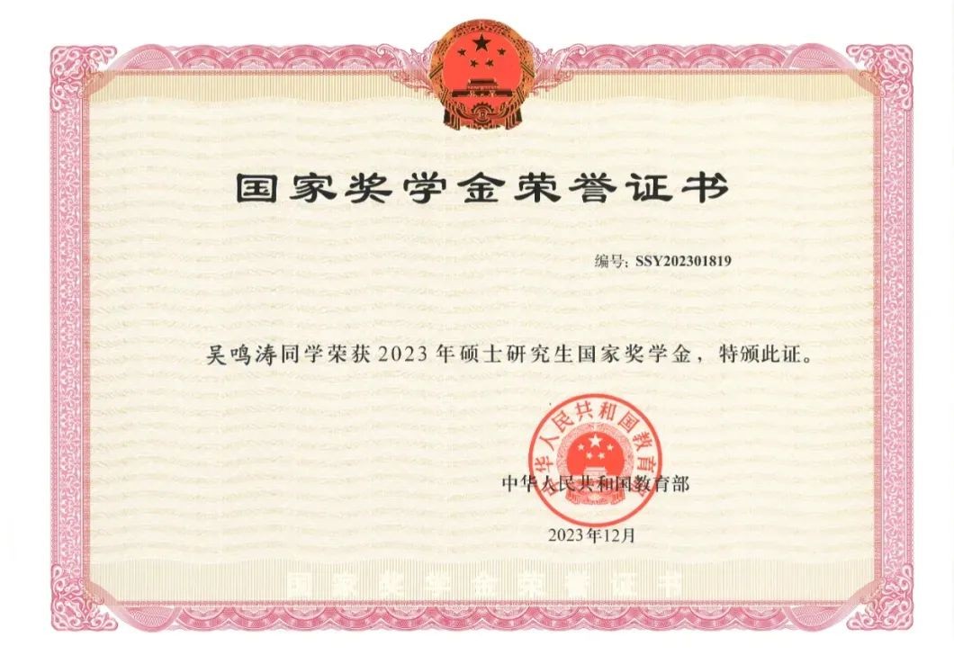 七年后,2024年5月22日,吴鸣涛作为taptap网页版登录kino的学子再次回到母校湖州市第二中学,把刚获得的国家奖学金2万元全数捐给了母校,设立了湖州市第二中学“苗圃奖学金”。吴鸣涛说这是他的一点小心意,希望以微薄的力量鼓励参与“苗圃计划”的学弟学妹们敢于创新、勇于追梦,努力考入心仪的大学。