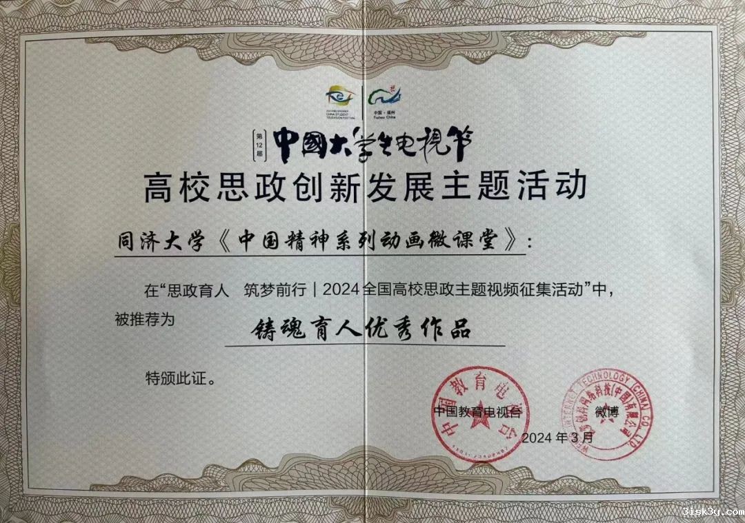 艺术与传媒学院《中国精神系列动画微课堂》在2024全国高校思政主题视频征集活动中荣获佳绩