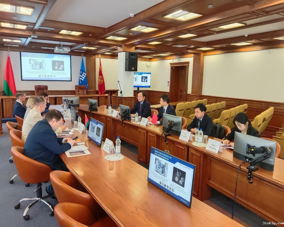 6月18日上午,交流团一行在白俄罗斯国立技术大学校长Sergei V.KHARYTONCHYK等人陪同下,调研了白俄罗斯国立技术大学科技园区建设,参观了科技成果展览,听取了白俄罗斯国立技术大学在材料、工业设计、机械等方面的科研成果及成果转化介绍。该校是白俄罗斯最负盛名的理工类大学,白俄罗斯国家科学院的大部分院士出自该校。