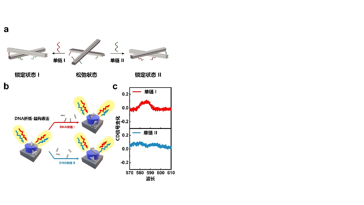 图1. 基于DNA折纸-超构表面增强圆二色谱的非手性传感探测平台