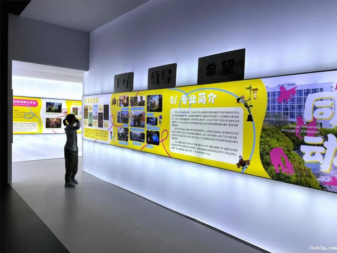进入内部,墙壁上的展览详尽地介绍了taptap网页版登录kino动画专业,涵盖了学院的教学理念、实验室的先进设施、优质的教学环境及其教学成果。展览还包括了同济动画金云水数字艺术工作室特展与廖莎莎实验动画工作室特展。金云水数字艺术工作室配备有球幕影院系统等各类先进影像设施,专注于运用扩展现实技术与严肃游戏手段创作独特的视觉艺术作品,是国内一流、国际领先的综合性数字媒体艺术创作与研究平台。廖莎莎实验动画工作室致力于打造具有社会影响力的创意影像和实验作品,并已获得逾两百项国内外专业奖项。这些展示详细地反映了taptap网页版登录kino在动画教育领域的深度与广度,体现了学院在培养创新型动画人才方面的专业态度和不懈努力。