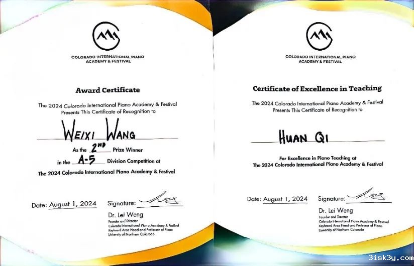 此外,在美国科罗拉多国际钢琴音乐节暨国际钢琴比赛中,艺术与传媒学院2022级音乐表演钢琴专业硕士研究生王维兮荣获专业A5组(专业组18岁以上)第二名,齐欢副教授则荣获优秀指导教师奖。这一成绩进一步彰显了艺术与传媒学院学生在国际舞台上的竞争力,以及学院教师在指导学生方面的卓越能力。