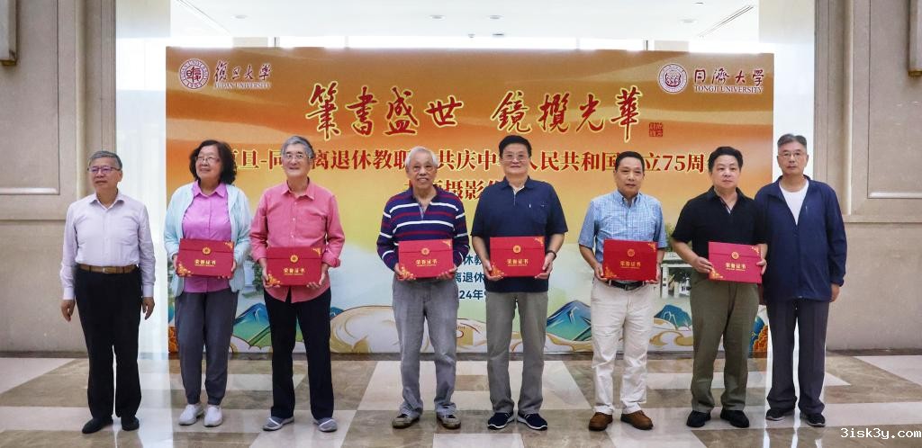 上海市教卫工作党委老干部处二级巡视员、老干部处处长金勤明,上海市高校退管会常务副主任李玉华为两校老同志作者代表颁发了作品入展的荣誉证书。