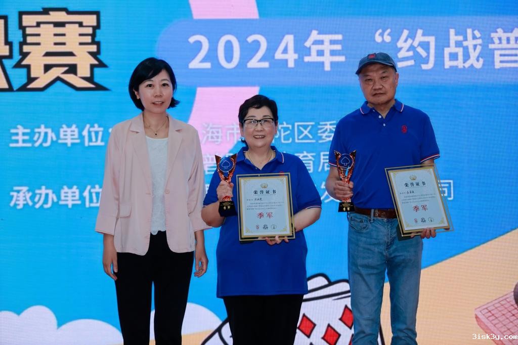 参加总决赛的48位选手由9月6日的预赛晋级产生,经历近2小时的精彩角逐,我校退休教师孟富海、陈狄雯荣获桥牌项目季军。