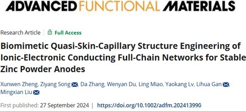 化学科学与工程学院刘明贤团队设计稳定的仿生锌粉阳极,研究成果发表于《先进功能材料》