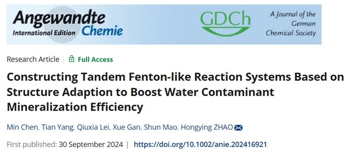 化学科学与工程学院赵红颖团队构建基于结构适配的串联类芬顿反应体系以提高水污染物矿化效率,研究成果发表于《德国应用化学》