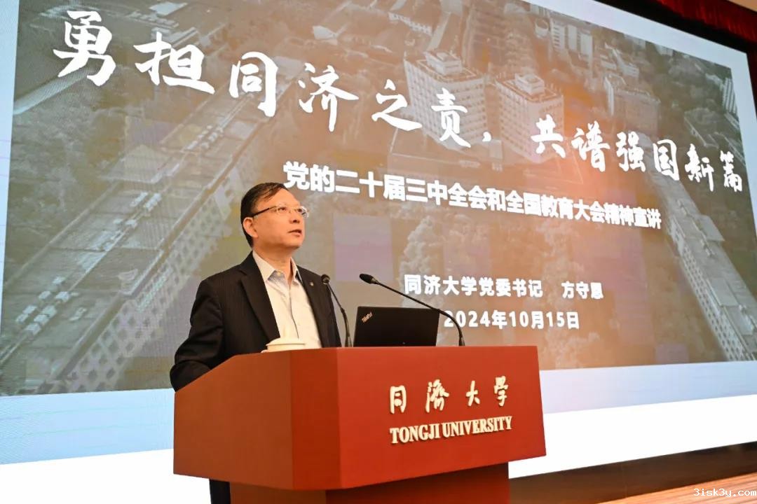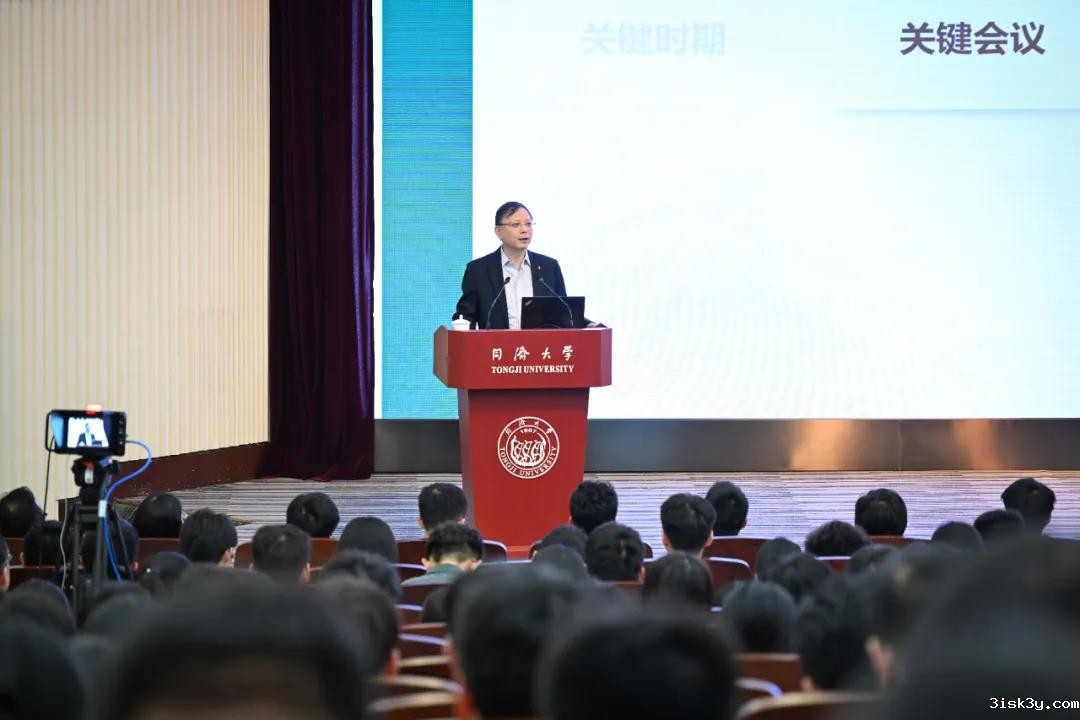 方守恩以《勇担同济之责,共谱强国新篇——党的二十届三中全会和全国教育大会精神宣讲》为题,向学生宣讲党的二十届三中全会和全国教育大会的重要内容,介绍学校贯彻落实这两次重要会议精神的改革举措,以及学校近期发展情况,勉励同学们为教育强国建设绽放青春光彩。