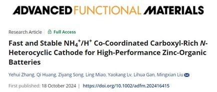 化学科学与工程学院刘明贤团队设计新型锌-有机电池正极材料,研究成果发表于《先进功能材料》